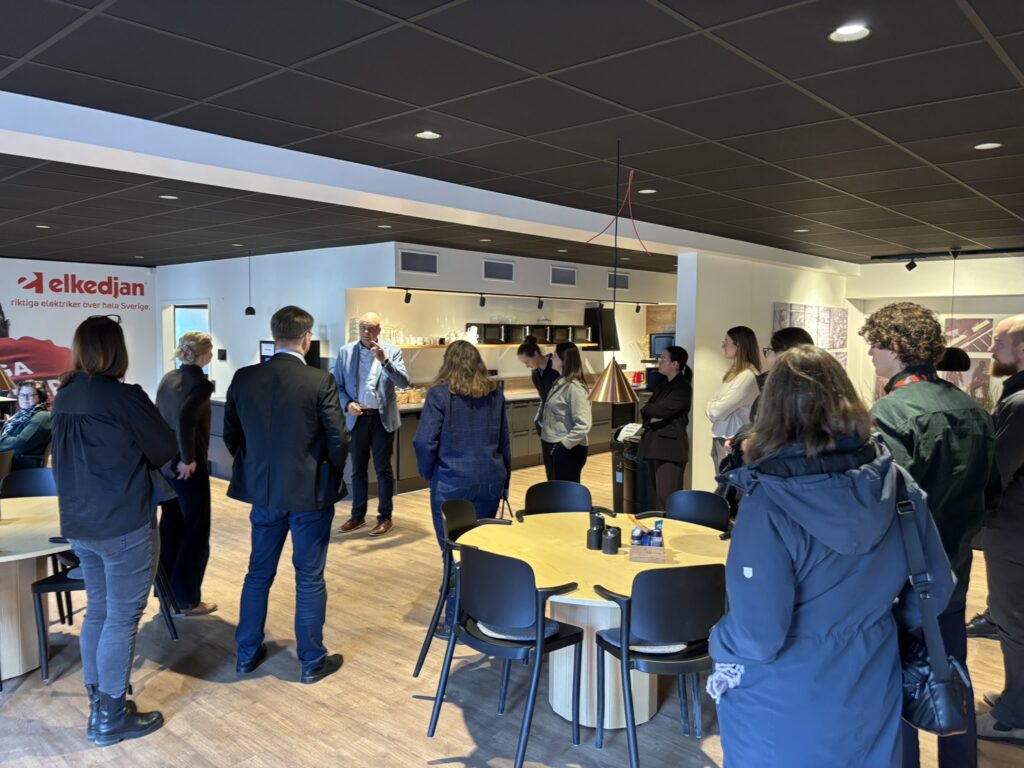 Värdföretaget Elkedjan presenterade därefter sin verksamhet. Vd Mats Liljegren gav en snabb tillbakablick på företagets drygt 60-åriga historia. Matz Gustafsson och Fredrik Klaar berättade vidare om Elkedjans hållbarhetsarbete och hur elektrifiering och energieffektivisering bidrar till den gröna omställningen. Ett tydligt exempel är utvecklingen inom belysning där moderna lösningar ger stora energibesparingar jämfört med äldre teknik.